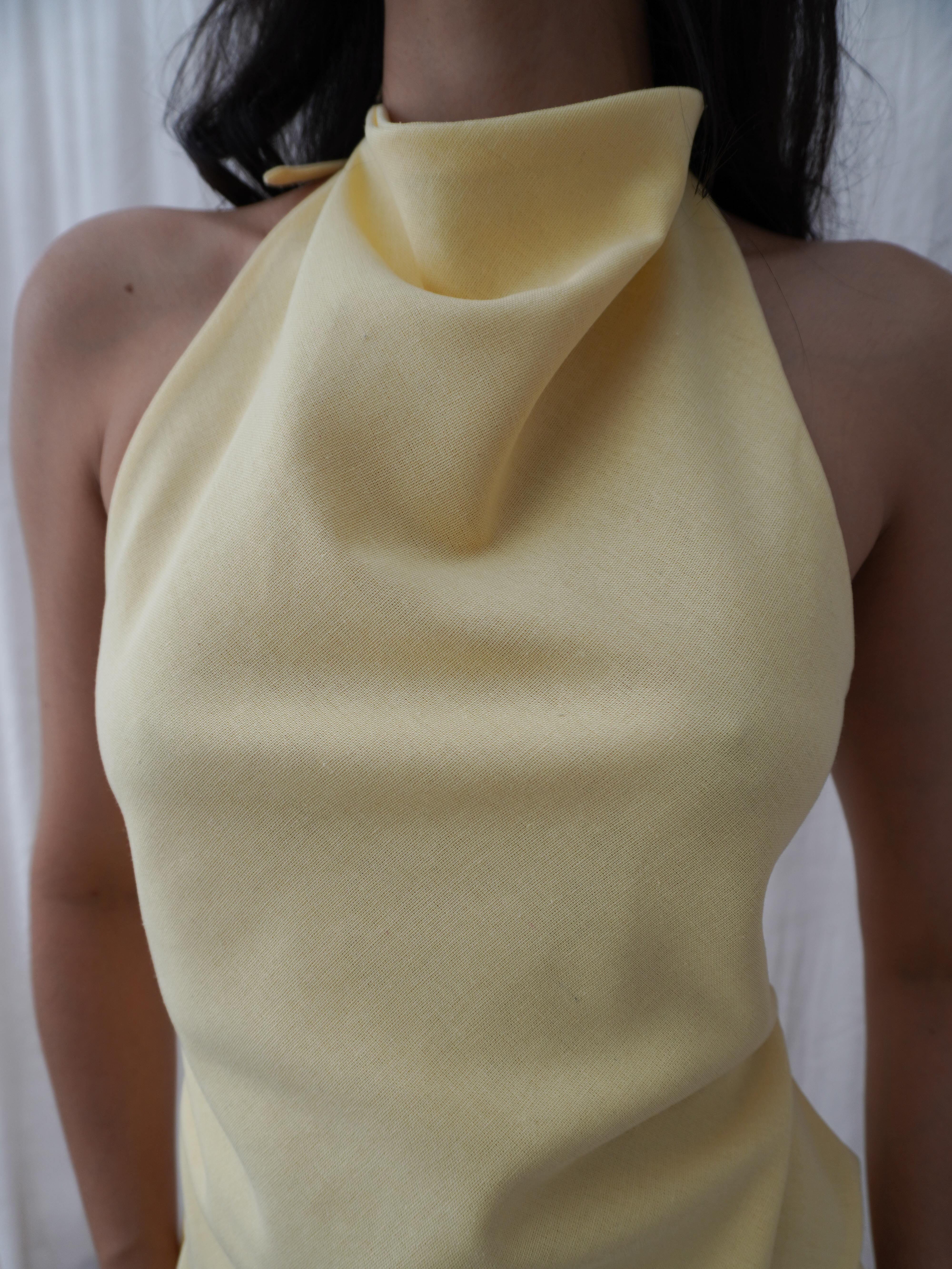 Set Paulina elaborado en lino para una sensación fresca y ligera, el top con cuello tipo halter y espalda descubierta ideal para estilizar tu figura con un short tipo globo aporta estilo al set.