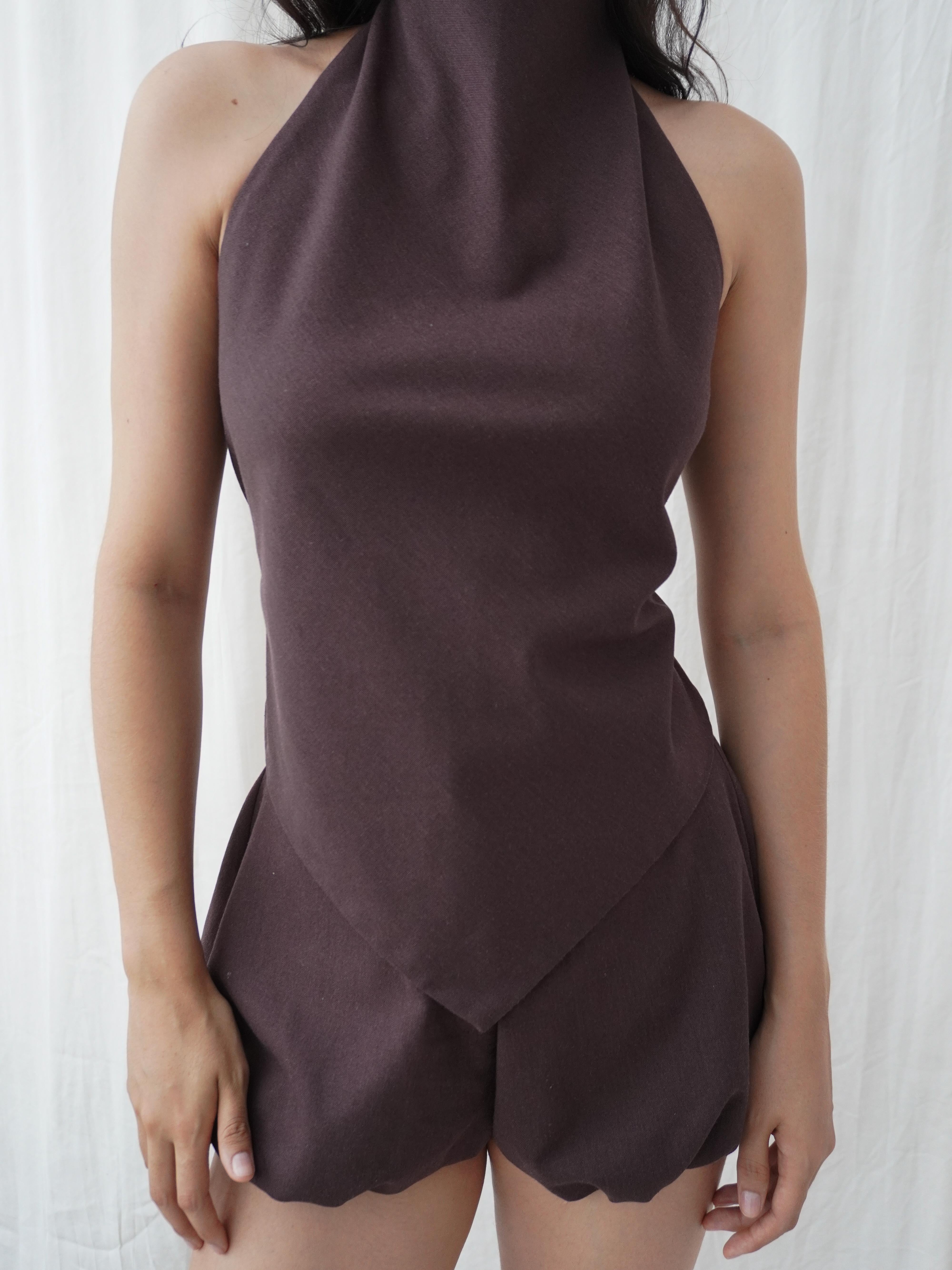 Set Paulina elaborado en lino para una sensación fresca y ligera, el top con cuello tipo halter y espalda descubierta ideal para estilizar tu figura con un short tipo globo aporta estilo al set.